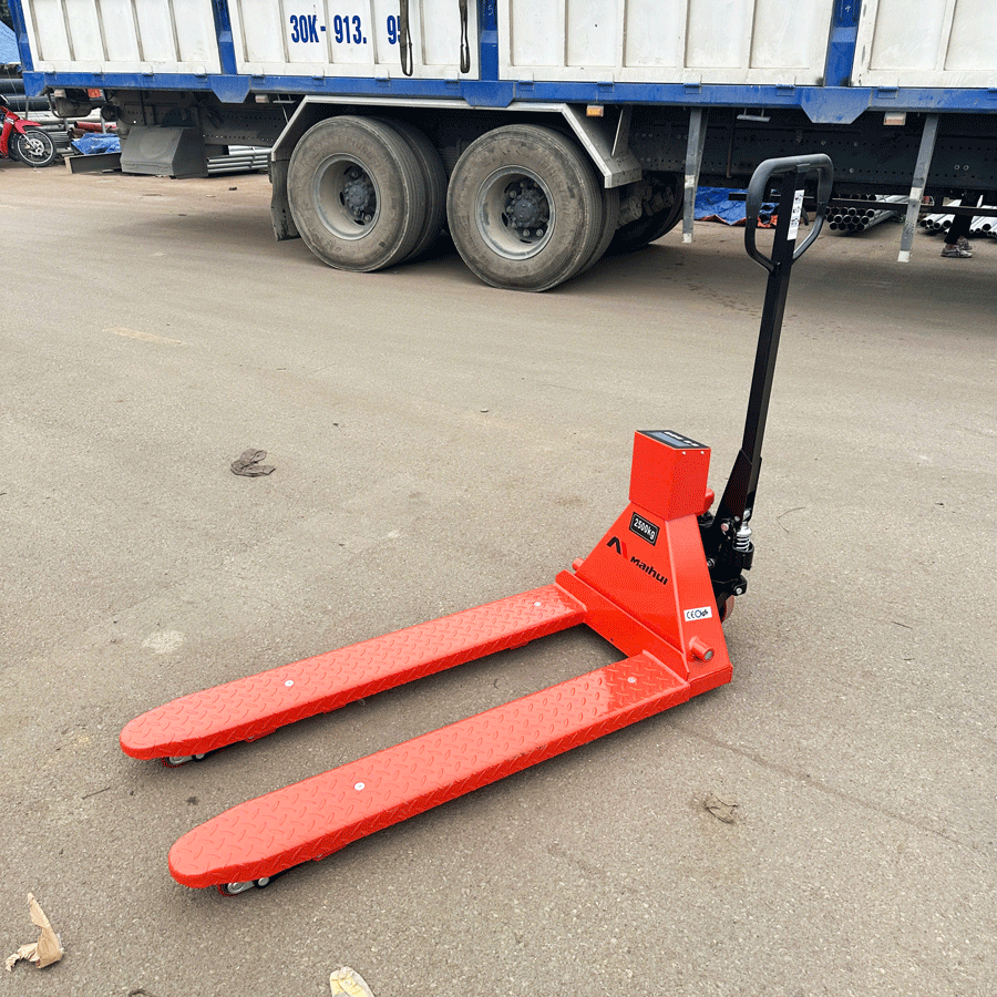 Xe nâng tay gắn cân điện tử có in của hãng Maihui là giải pháp hoàn hảo cho nhu cầu nâng hạ và cân đo hàng hóa trong kho bãi và các nhà máy sản xuất. Với thiết kế thông minh, sản phẩm này không chỉ giúp nâng hạ hàng hóa nặng mà còn cho phép người dùng theo dõi trọng lượng một cách chính xác và tiện lợi.